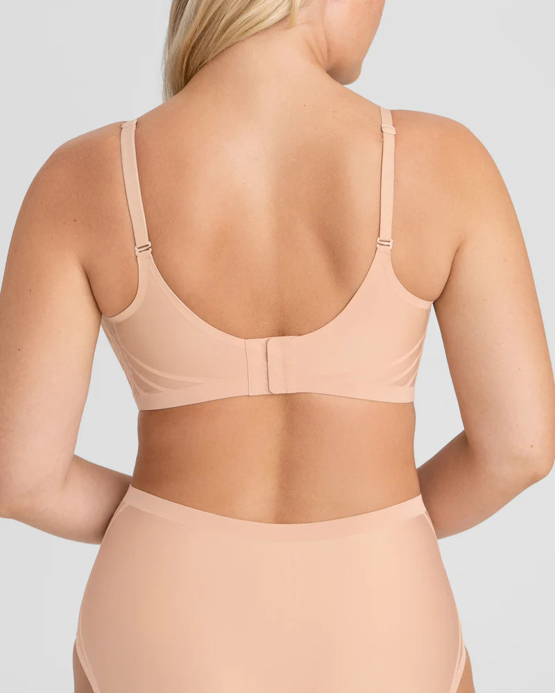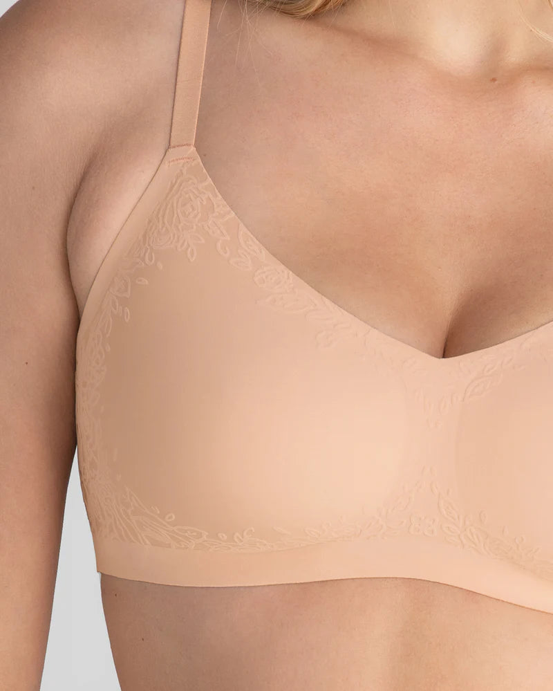 Three key elements team up to provide incredible support in the Cloud Embrace Wireless Bra. Foam cups offer lift, shaping, and prevent uni-boob. A wide, supportive bottom cradle anchors securely to your rib cage for a hugged support feel. And its honeycomb-bonded structure, made with our unique Cloudfuse silicone glue, delivers support without the bulk of seams or elastics, ensuring comfort and a sleek, seamless look. Together, they give you the perfect combination of support and comfort—no wire needed!