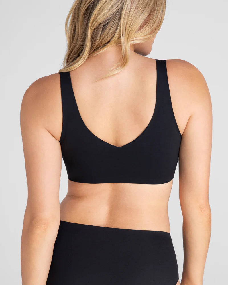 We took our perfectly fitted, super supportive, V-Neck Bra and gave it the softest, most magical fabric ever. This wireless bra features a bonded cradle that replaces underwire for maximum comfort and support. The bra's hardware-free design lies invisibly underneath tight clothing for a truly undetectable finish.